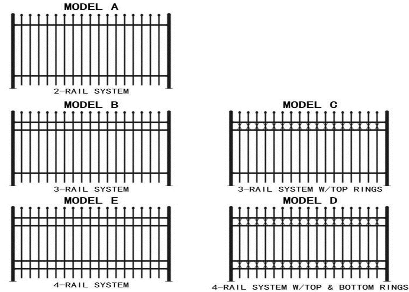 BMP’s Black Garrison Fence is made with premium materials to ensure it meets the highest standards. Below are the detailed specifications for the various sizes and components of the fence: